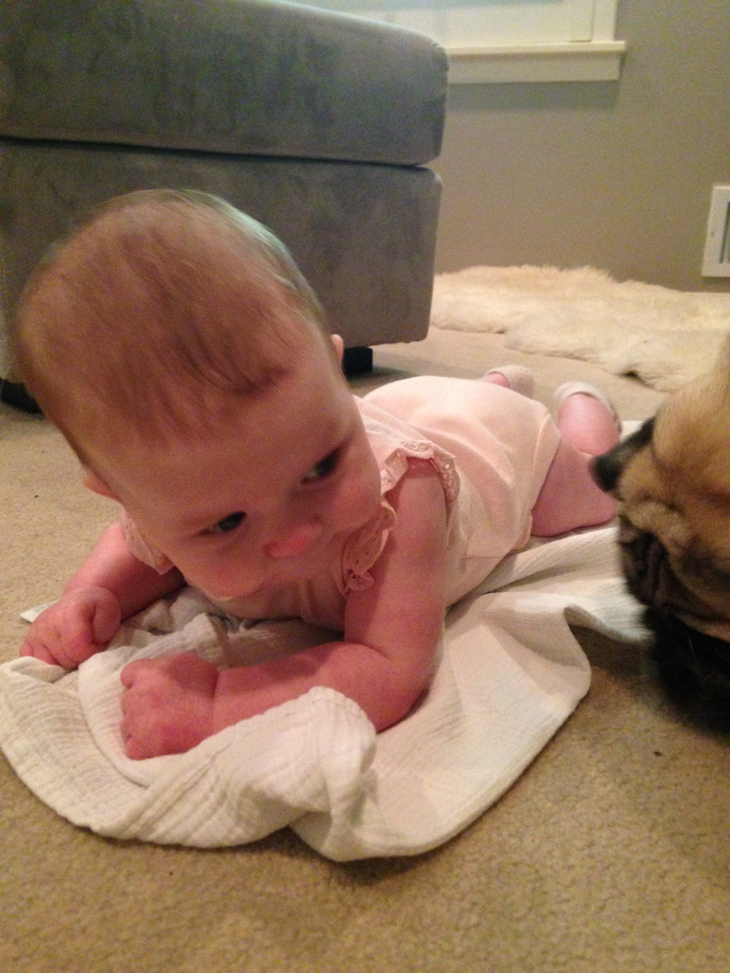 Meredith waited until everyone was settled in at home and things were back to our usual routine to finish her birthday month with a bang! Her first real steps/walk! She did great!!