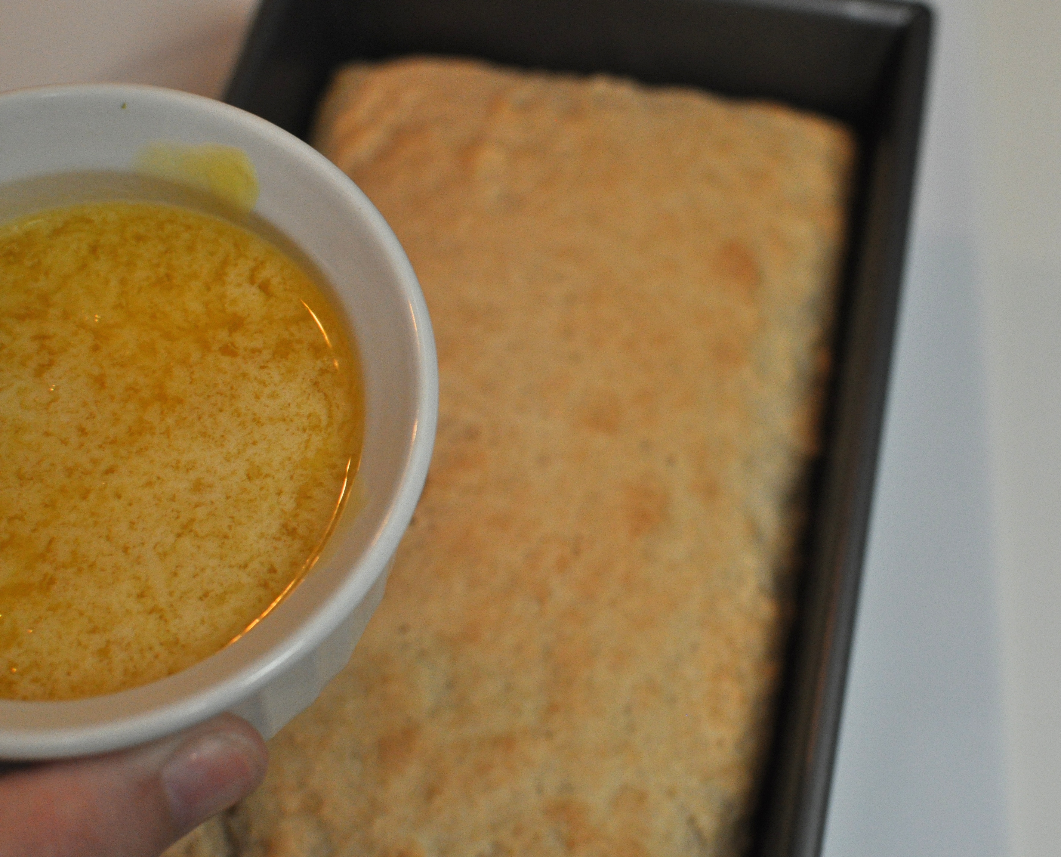 Bake bread at 350º F for 45 minutes. Pour butter over bread. Lift bread a little to let butter run down into pan.