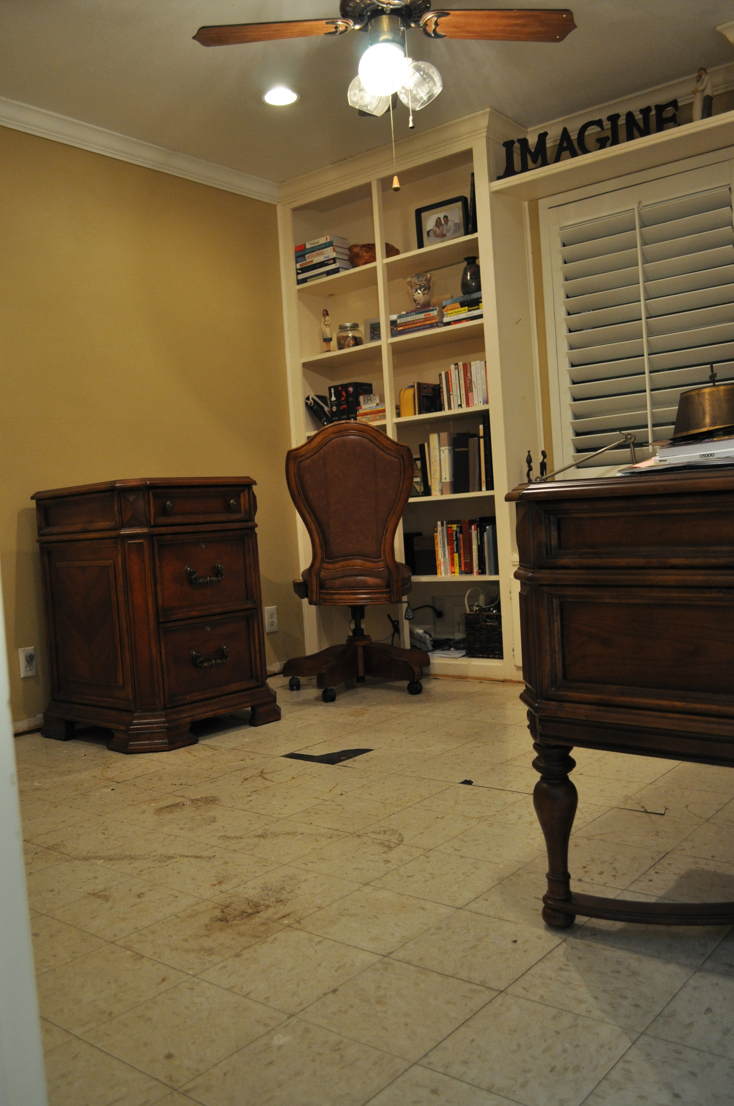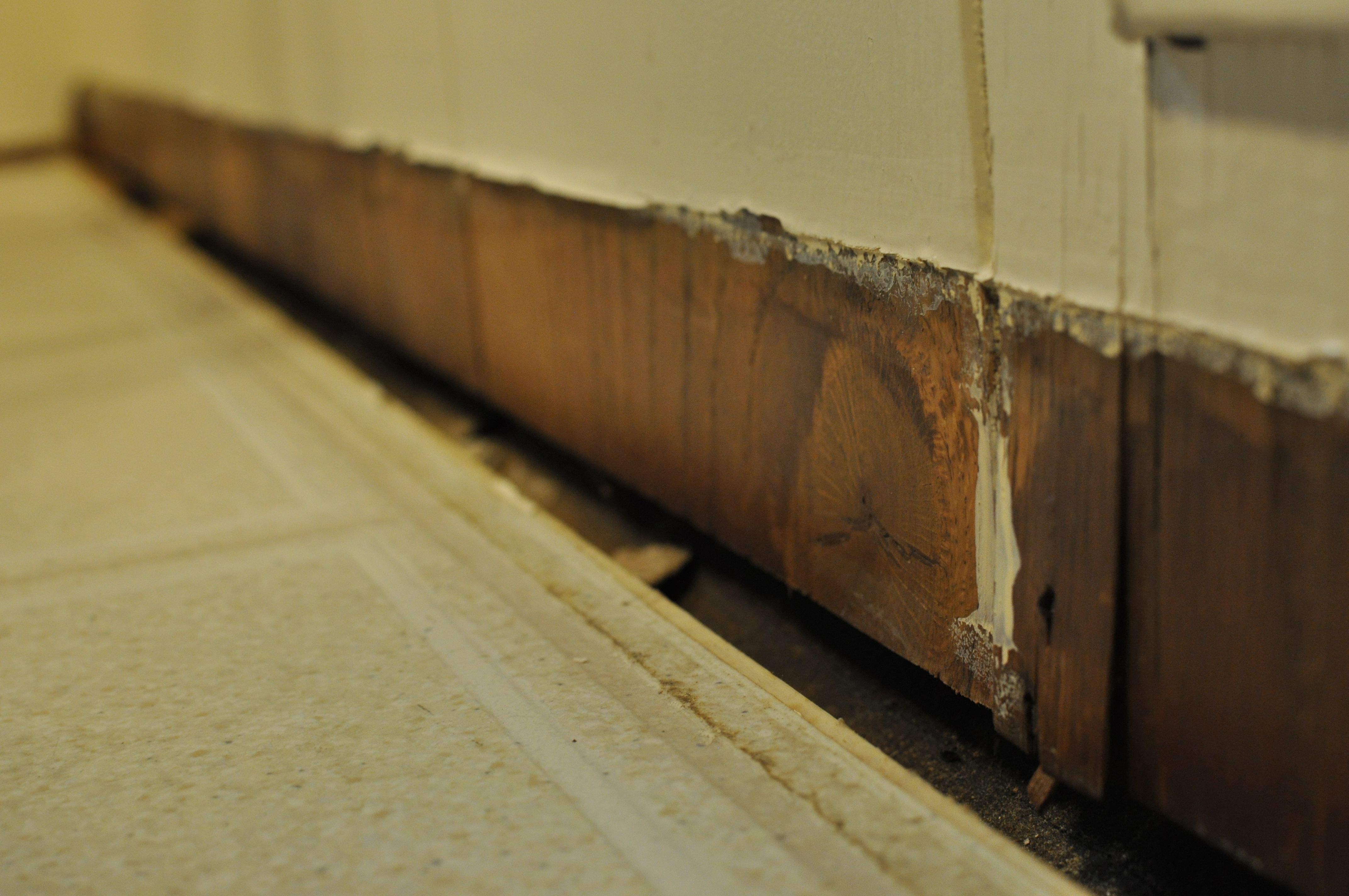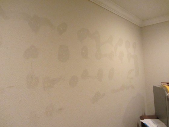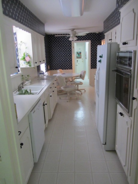 The kitchen was so bad that I woke the next morning after it was finished with hoping it was all just a bad dream. Maybe I dreamt the hideous blue on the walls? Maybe it looks better today, in the morning sun? But it wasn’t. It was still as bright and as awful as it was before. So, I walked into the kitchen, took out all the color samples I owned and painted. Not even the morning coffee could take me away. Until, Paul with his infinite wisdom (or being of the male species) said not to waste my time. “We have to figure out our water damage situation before we paint the whole kitchen anyway, Sarah.”